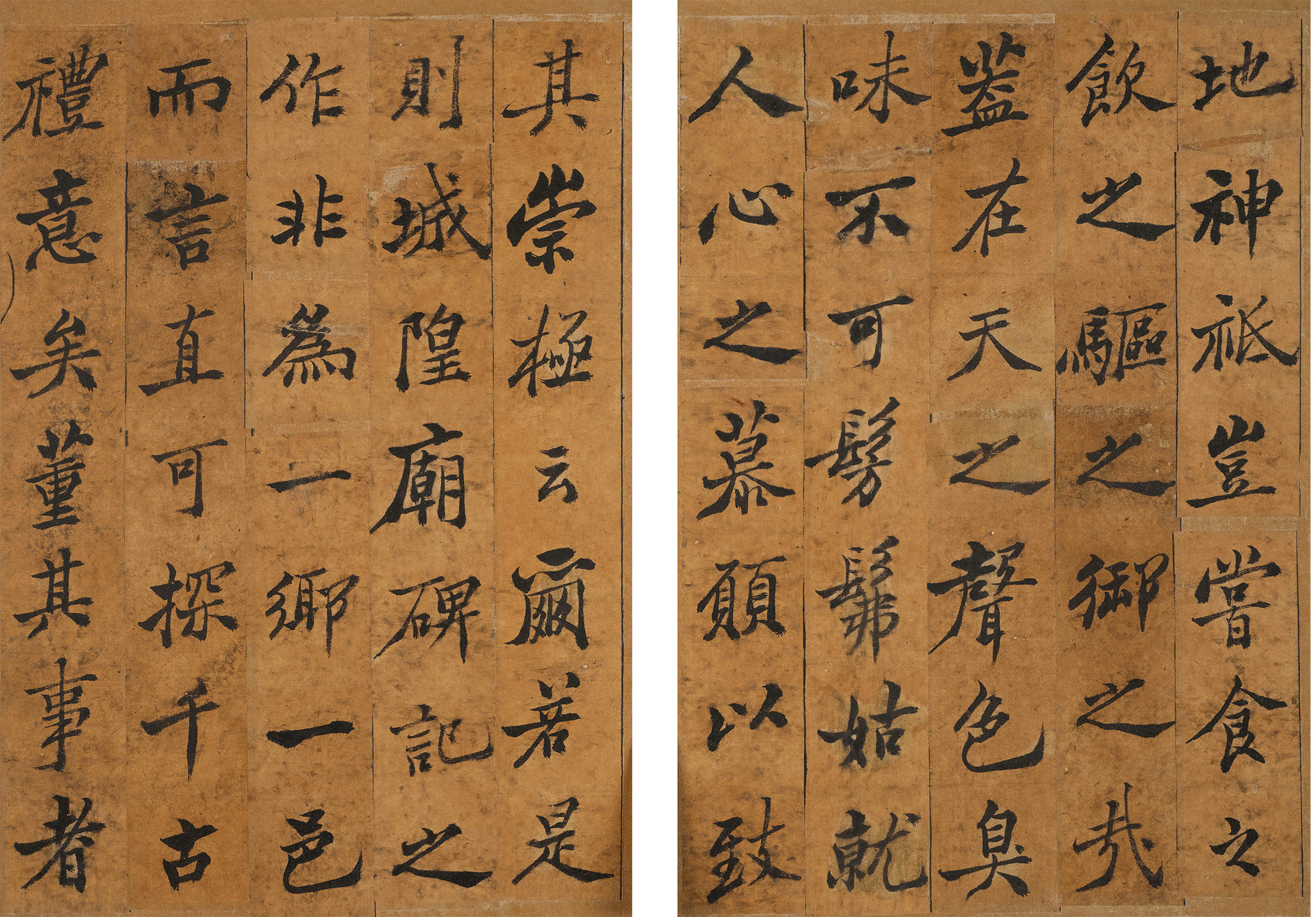 历史上的名碑,原稿多已不存,徒令后人悬想,而郑板桥《新修城隍庙记》墨迹的存世由此更见珍贵难得。书法作品带着作者挥洒的温度,是前贤“手泽”,较石碑之二度创作更能表现作者的真实而独特的艺术魅力。翻阅此册,时光仿佛回到了乾隆十七年,潍县县令郑燮端坐在衙斋之内,磨墨拈笔,一丝不苟地书写着他的见解、他的思想。