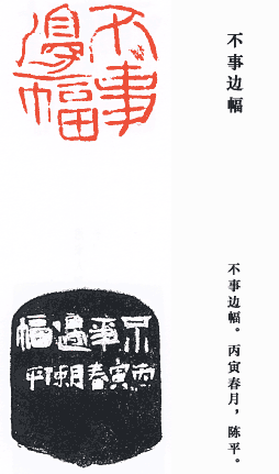 一九六○年二月生于北京。一九八四年毕业于中央美术学院中国画系。平生爱作山水中人,喜丹青,工书法,填小令,学短诗,更善执寸铁游刃于寿山、青田之中。著有《廿世纪中国画大系·陈平》、《费洼山庄画集》、《问故楼书法选》、《樗木堂印蜕》、《瓶龛诗草》、《新文人画集·陈平》多种。现为中国画研究院专业画家。