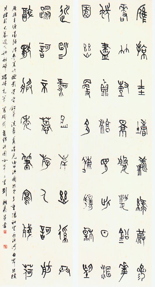 篆书两条屏 自作诗 《洹园吟草二首》200x52cmx2