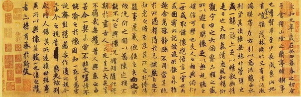 冯承素 临王羲之《兰亭序》真迹,看看颜真卿老到的行书, 看看张旭、怀素淋漓的狂草, 看看当时的笔法论述,可谓对王字亦步亦趋,不出左右。可见唐人对王字是了如指掌,烂熟于心。