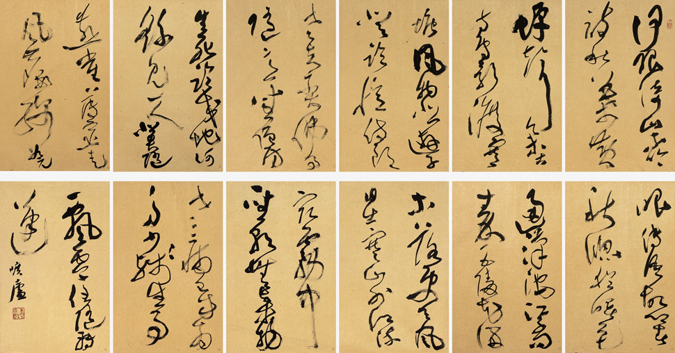 王忠勇 《唐诗选钞》 作品尺寸:50cm×80cm×12 作品释文:略 创作手记:意临吾乡王铎书。先辈王铎,前人谓三百年来一人而已,评价甚高。然王书得之雄健,失之刚狠,若不善学,易入俗格。余略加篆隶笔意于笔下,化方折顿挫为圆厚绵润,以合己意。 书写材料:狼毫、李廷珪油烟墨、手工毛边纸 印 章:大雅、木斋主人王忠勇
