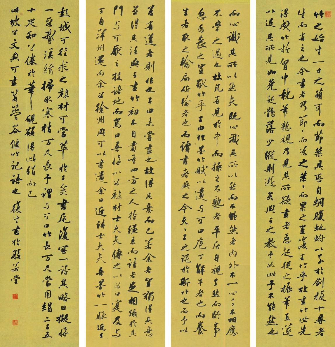 吴行《行书苏轼文与可画筼筜谷偃竹记》四条屏
