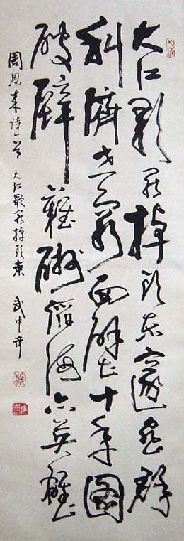 武中奇幼嗜书法,因家贫只能以青麻作笔,方砖当纸,清水代墨 。8岁时临写《九成宫醴泉铭》,3年後继学《郑文公碑》及《经石峪》拓本,及长,上追秦汉,兼攻金石 。早年参加革命,仍孜孜於书法印章,抗日战争及解放战争中,多次为革命烈士纪念碑书丹。上海解放时,应刘长胜同志之请为上海总工会大楼书写了“上海总工会”和“全世界无产者联合起来”等巨字。受陈毅市长之命书写“上海市人民政府”的牌子。陈毅曾说“七个大字昭示了上海市人民政府的诞生”。书法作品参加过历届全国书展和国内外重大展览。曾率书法家代表团出访日本、香港、澳门。作品为国内外数百处博物馆、美术馆、陈列馆及各地名胜收藏、展出和刻碑。山东省已建立“武中奇书法篆刻展览馆”、“武中奇书法研究协会”。