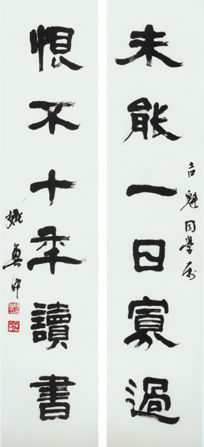 隶书未能恨不六言联 133×31cm×2 释文:未能一日寡过,恨不十年读书。 来自《姚奠中书法展》 中国美术馆 2006.08.25 至 2006.09.02