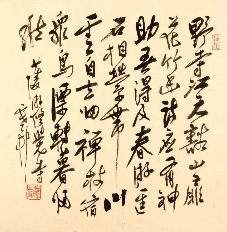 野寺江天豁,山扉花竹幽。诗应有神助,吾得及春游。