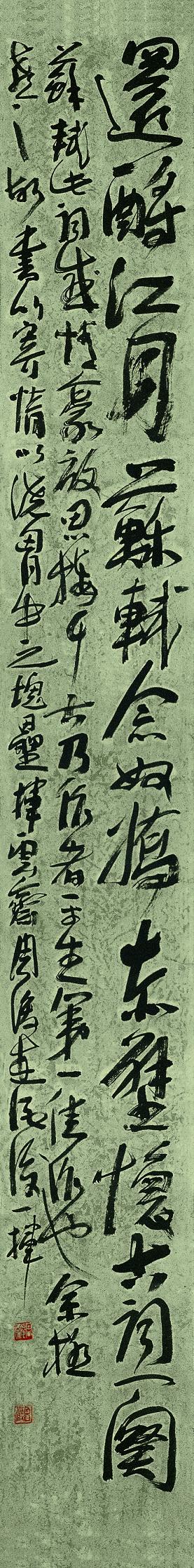 释文:大江东去,浪淘尽,千古风流人物。故垒西边,人道是,三国周郎赤壁。乱石穿空,惊涛拍岸,卷起千堆雪。江山如画,一时多少豪杰。 遥想公瑾当年,小乔初嫁了,雄姿英发。羽扇纶巾,谈笑间,樯橹灰飞烟灭。故国神游,多情应笑我,早生华发。人生如梦,一尊还酹江月。