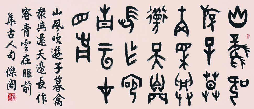 释文:山风吹游子,暮禽众与还。天边长作客,青雲在眼前。