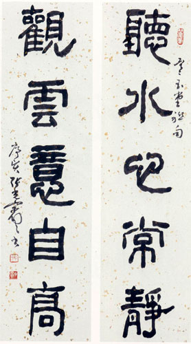 《隶书听水观雲五言联》——图片来自台湾