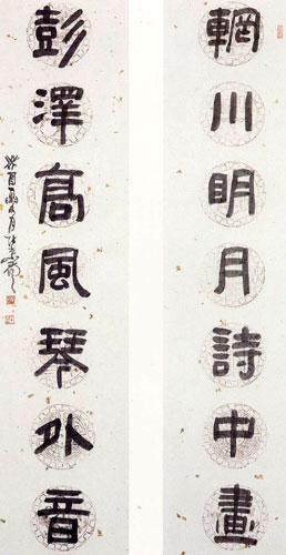 《隶书辋川彭泽七言联》——图片来自台湾