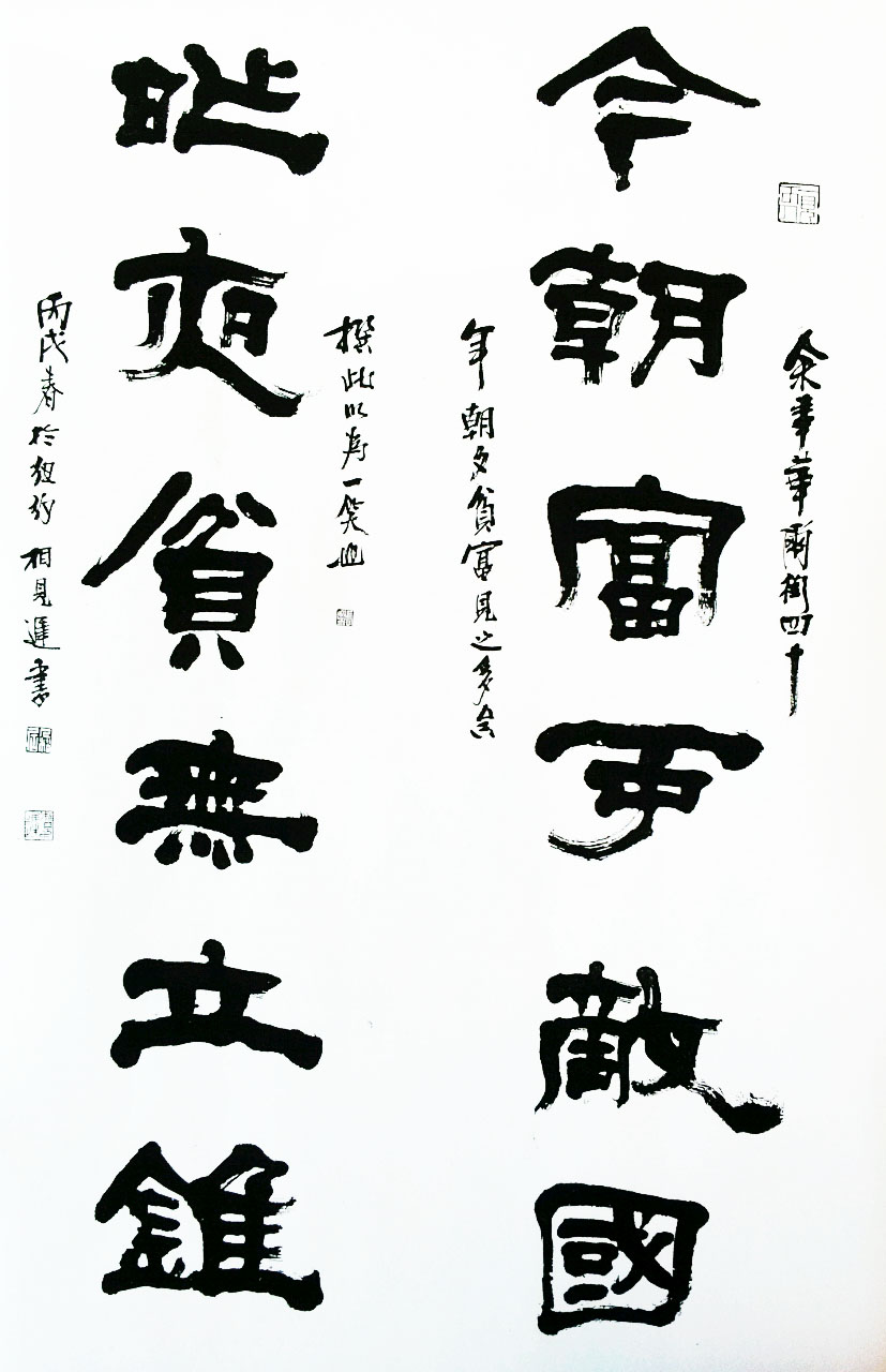 相见迟《今朝富可敌国 昨夜贫无立锥》六言联 隶书