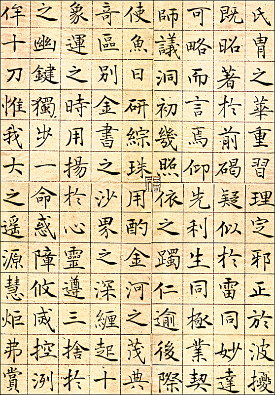 管峻的楷书首先体现一种“正”。有人说楷书本身就很“正”,为何还说要把握“正”?因为大部分学习楷书的人,为了追求字的结体,最后写楷书变成了安排笔画摆的姿势;以为这样就可以把楷书写得险峻,殊不知适得其反,字反而显得很扭捏,失去了楷书应有的“正”气。柳公权有“心正则笔正”的故事,这则故事很多人都把它理解为柳公权的笔谏。其实,并不完全这么认为。写字若心不“正”,字的确很难“正”。总是想“欹、侧”,很多时候是反而让书法作品失去“正”气之雍容,失去“正”气之不阿,从而走向它审美的反面“小”和“丑”。试着欣赏管俊的楷书作品:每个字给人的感觉都是站的“直”、站的“正”。他的字重心位置不会忽偏左、忽偏右。他是以笔直的竖画挺直腰杆的,他是以劲挺的横画表现出精神的。因而可以说管峻也是把“正”提高到很高的审美要求上去的。