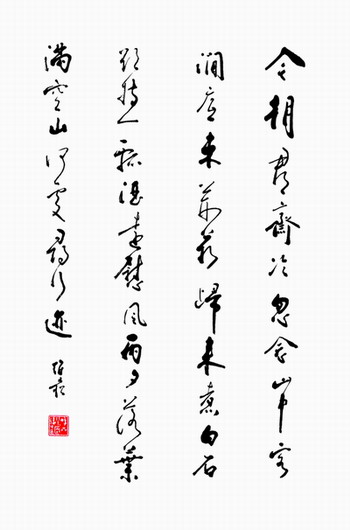 又说:“中国诗文里有用典故的习惯。用典故可以使人产生许多历史的联想。我们刻印也要在旧面目上增加一些新东西,让人对古代艺术形式产生联想,从而赋予旧有艺术新的内容,丰富它的内涵。”这一点也可以用先生的行书来说明。先生写行书,最重“行”的节奏和韵律,所以他的运笔,行止合度,不激不厉,不飘不滞,一任天机流衍,丝毫没有故作夸饰的地方。作品喜欢字字独立,不枝不蔓,却又笔笔呼应,顾盼有情,形断意连,略无挂碍。用墨喜和润,用笔取含蓄,故其书清婉多姿,温润可人,其文人书卷气息溢于字里行间,谦谦君子风度跃然楮墨之上。