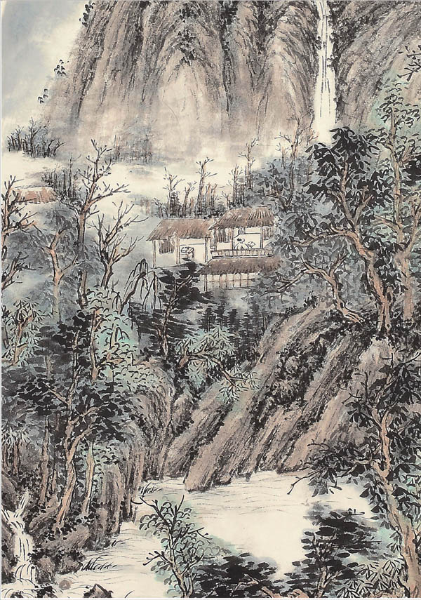 赖智豪《密树含春图》(下为局部)纸本 138×45厘米 2012年