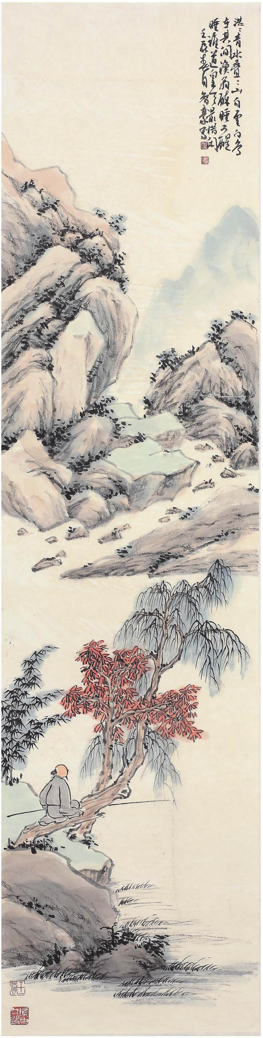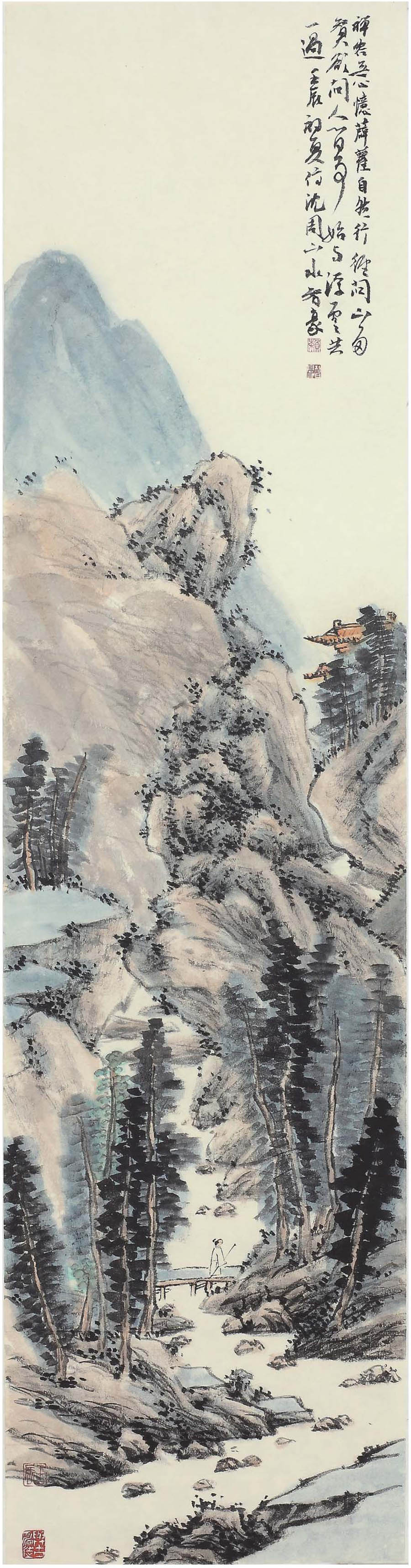 赖智豪《仿古山水四屏》纸本 138×35厘米×4 2012年