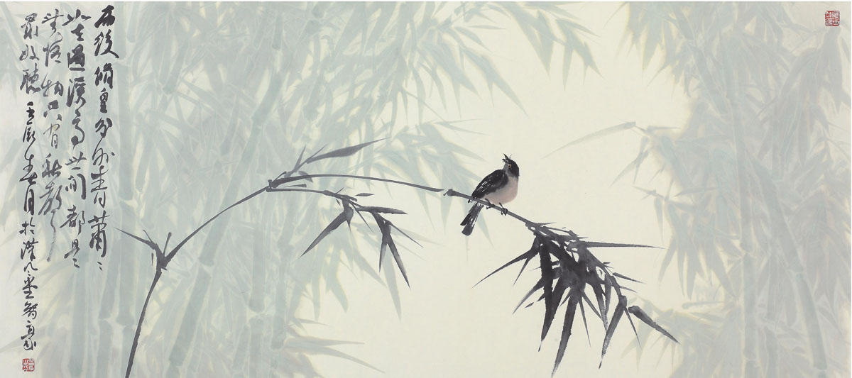 赖智豪《雨后修篁图》 纸本 138×68厘米 2012年
