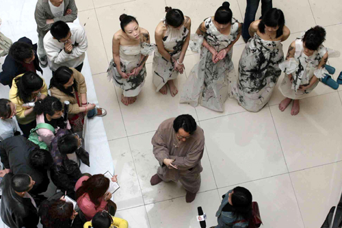 张强在带硕士研究生,研究方向有二:一,中国本土艺术现代化;二、视觉艺术研究。书法,最为中国本土化的艺术样式,传载着中国文化的核心精神。女体,最为完美的自然物质,最为强烈的视觉冲击,让人震撼让人惊异让人愤怒让人发狂……张强,他不在墙上写了,不在绢上写了,不在布上画了,不在纸上写了……他在人上,尤其在女人的肉身上写了,人在画上,画在人上了。女人,多好的艺术源泉和载体啊!女是性别,人是人格,二者缺一不可。女人才既有了性别更有了独立的人格。画,主要目的是审美游戏,畅神达意。写意即抒写胸臆也。艺术有审美与教化功能。不美的话,为何诸多女人们参与?不美的话,为何诸多男人女人们关注?不美的话,为何诸多人们惊奇?若是美,为何众人谩骂?曰:仁者乐山,智者乐水而已。教化,一个悖论,教是让人直接明白,化则反之,是让不能一下教明白的人们渐渐地慢慢地明白。
