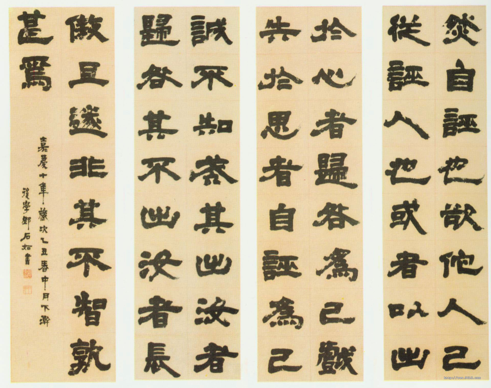 款识:嘉庆十年(1805)岁次乙丑春中月下澣,后学邓石如书。