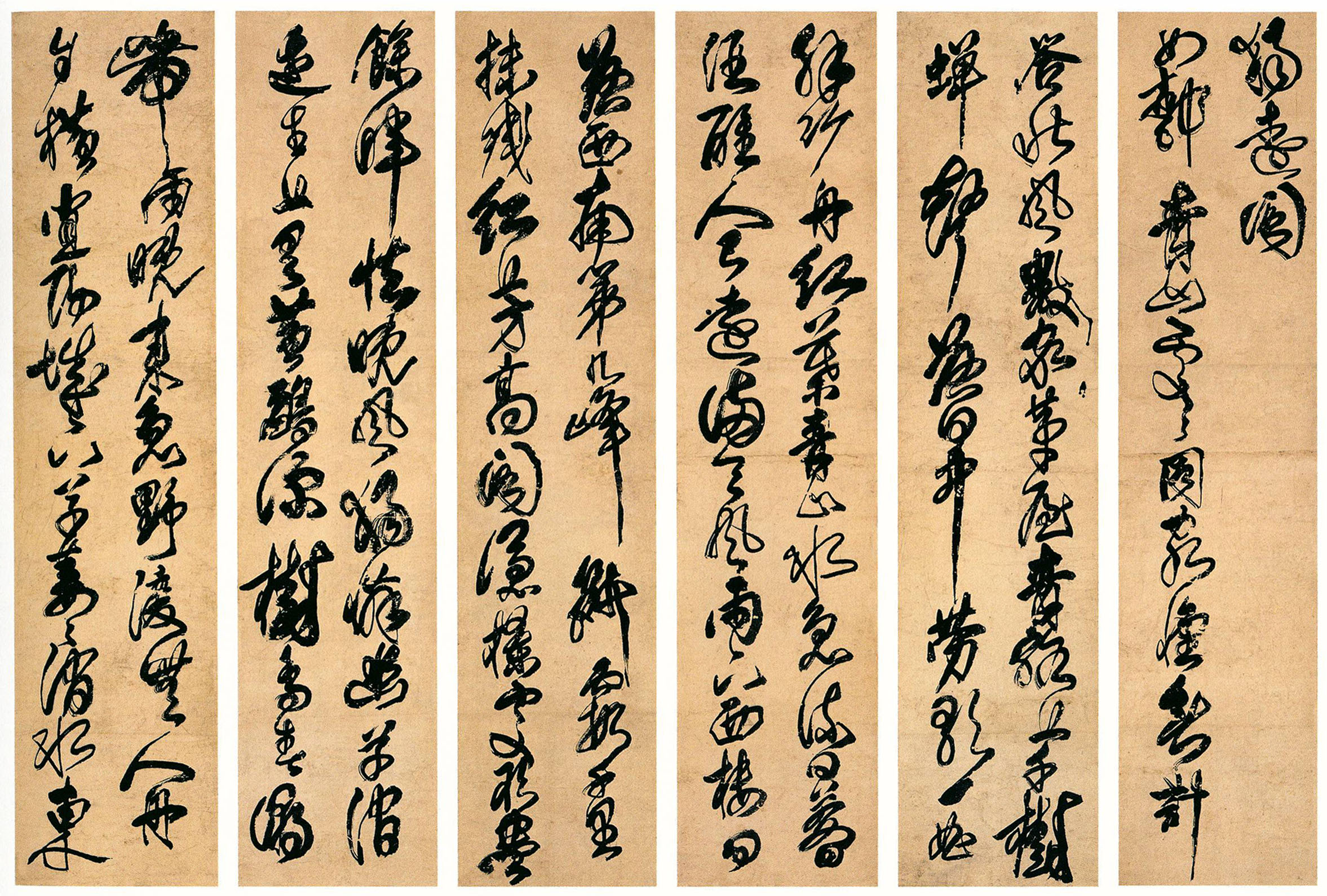 傅山《独远阁录唐宋诗九首十二条屏》纸本草书 161.6×37.3cm 四川博物院藏