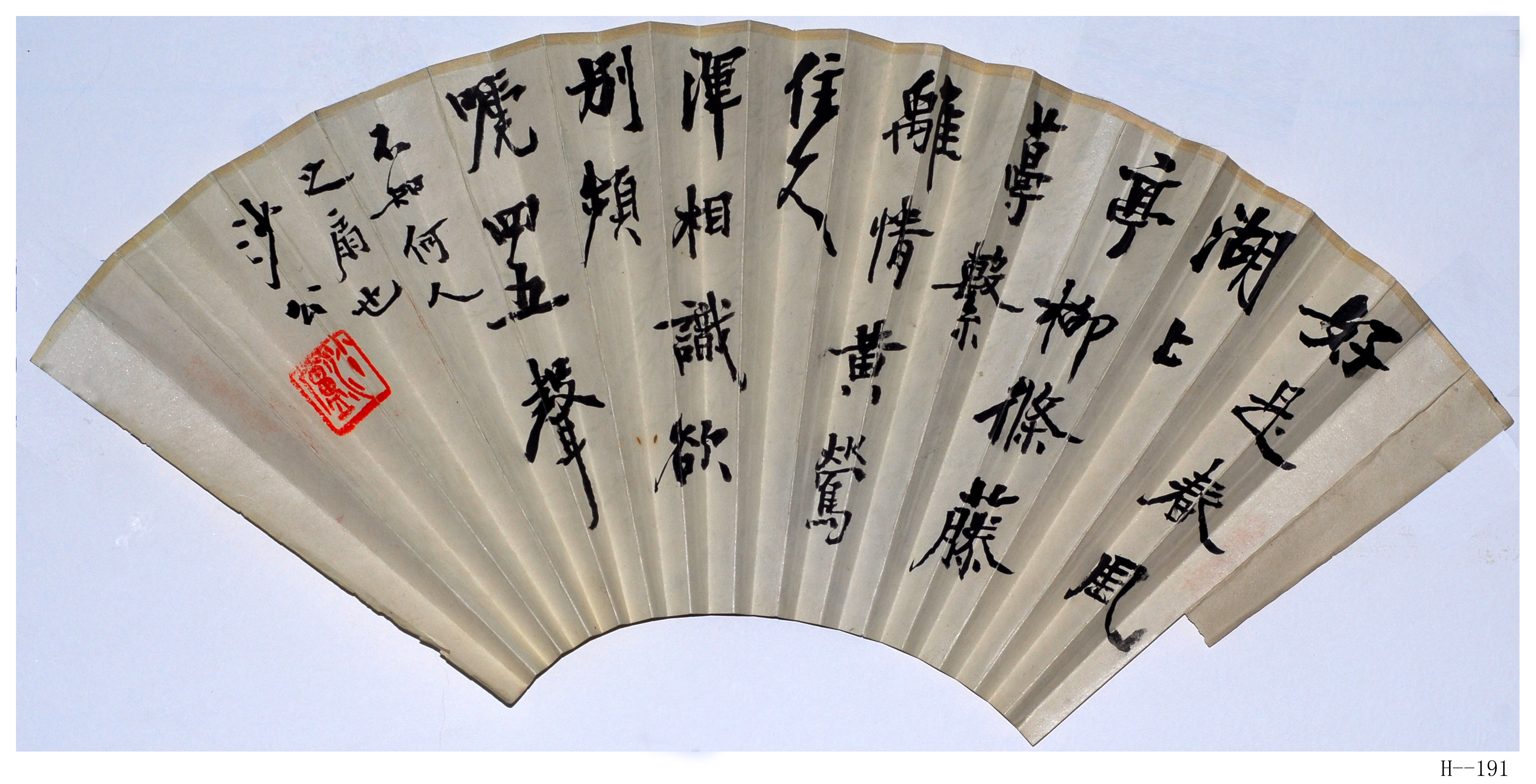 释文:好是春风湖上亭,柳条藤蔓系离情。黄莺住久浑相识,欲别频啼四五声。 款识: 不知何人之扇也,沙公。 钤印:沙庐(朱文)
