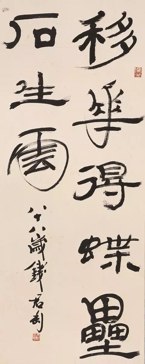 释文:移花得蝶,垒石生雲 八十八岁钱君匋 钤印:君匋(白文)、豫堂(白文)