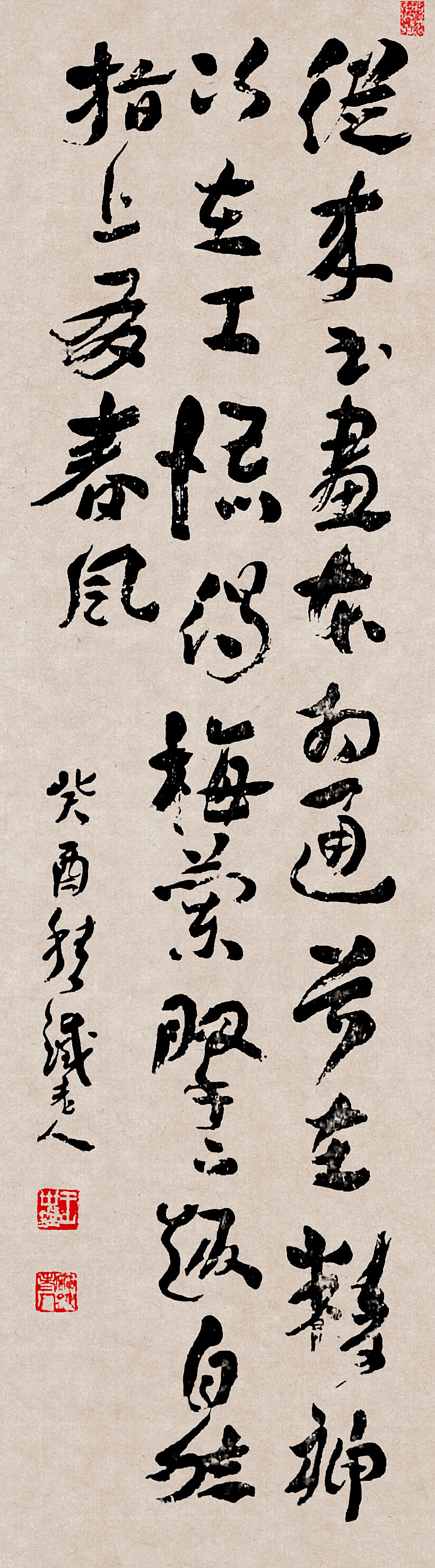 释文:从来书画本相通,首在精神次在工。悟得梅兰腕下趣,自然指上有春风。