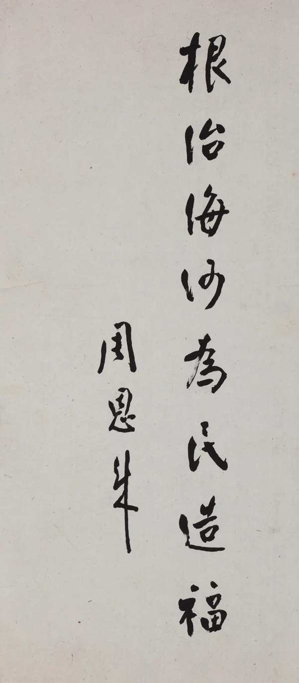 1963年,一场有水文记录以来所未见的特大洪水向天津袭来。天津人民在党的领导下,英勇奋战,取得抗洪斗争的伟大胜利。为彻底消除洪水隐患,党中央作出部署,开展根治海河,以防洪工程建设为重点的大规模水利建设。周恩来总理为此亲笔手书题写"根治海河为民造福"。现收藏于天津博物馆。