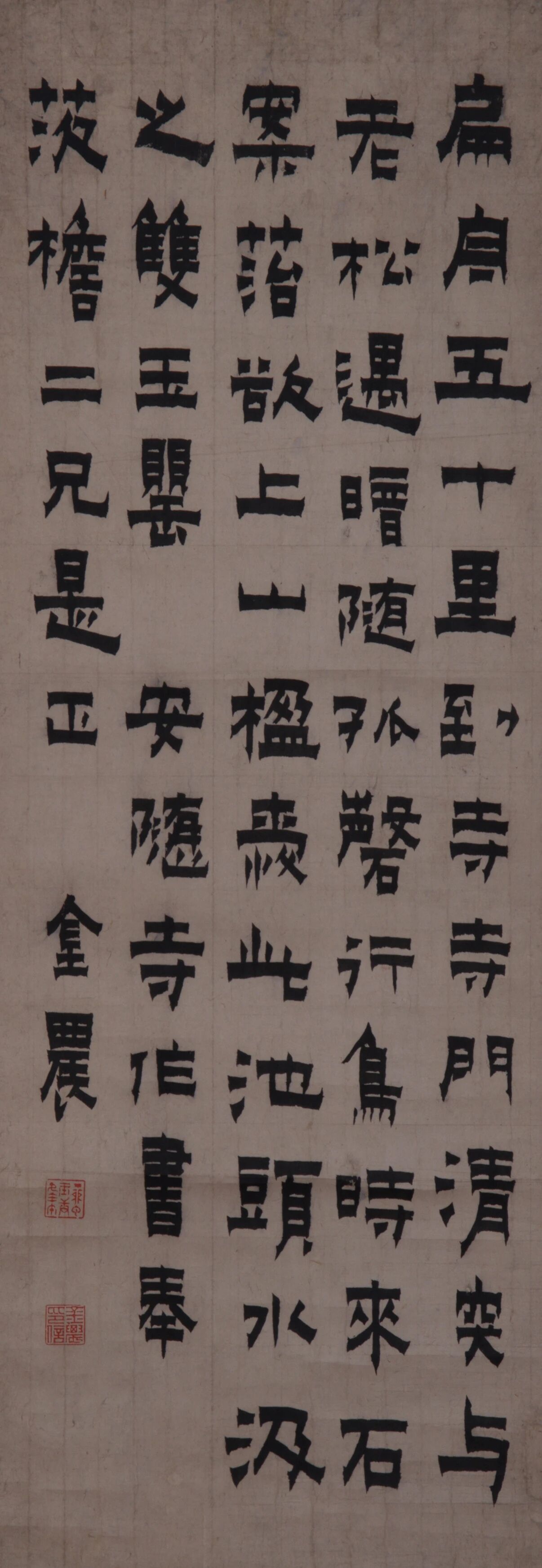 金农《楷隶遇安隐寺泉上诗轴》93cm×34cm 君匋艺术院藏