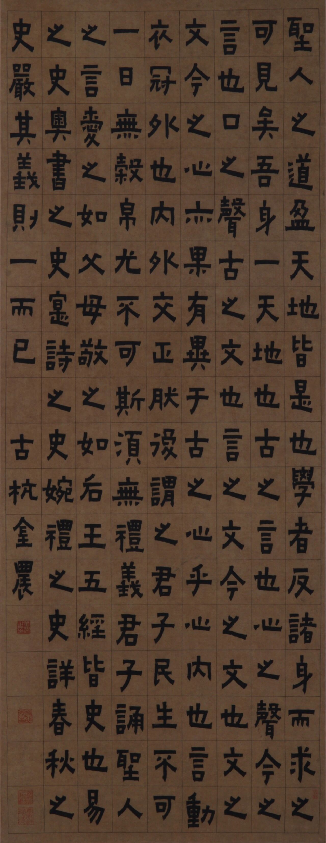 金农《楷隶节录黄宗羲南山素言轴》116cm×44cm 君匋艺术院藏