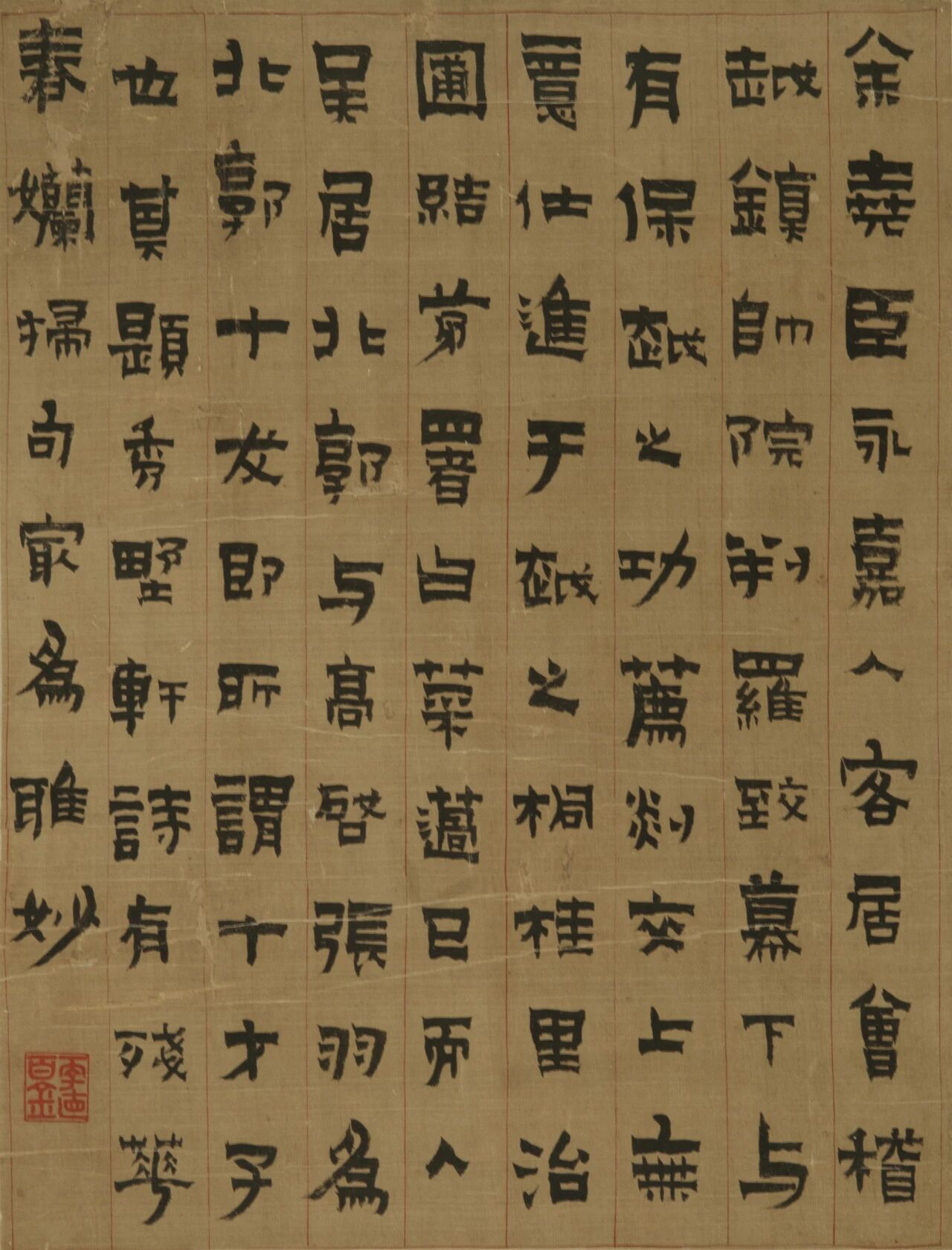 金农《漆书节录明人余尧臣小传》44.7cm×33.4cm 浙江省博物馆藏