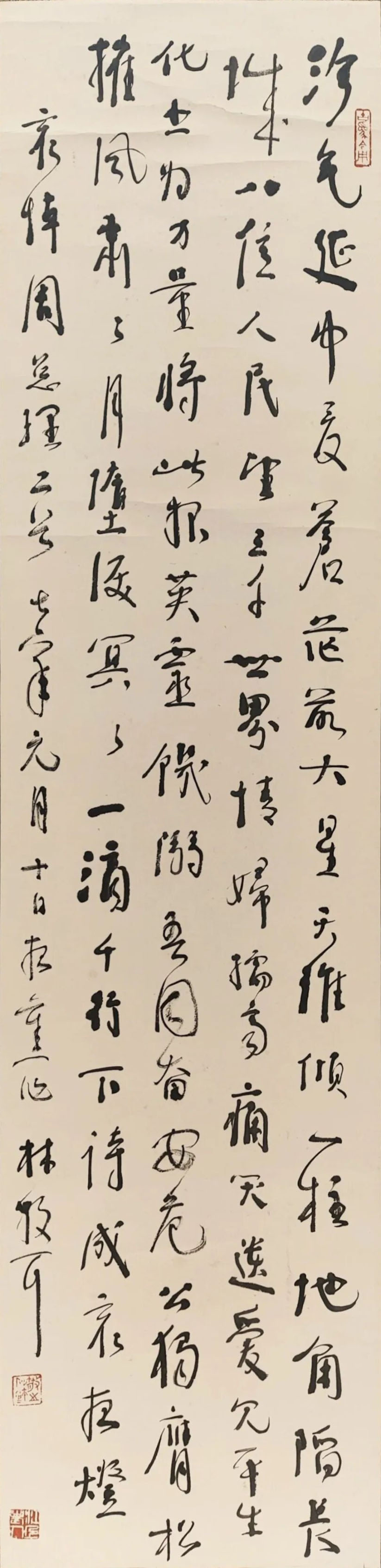 林散之《草书哀悼周总理二首轴》 137×33.5cm 浦口求雨山文化名人纪念馆-林散之馆藏