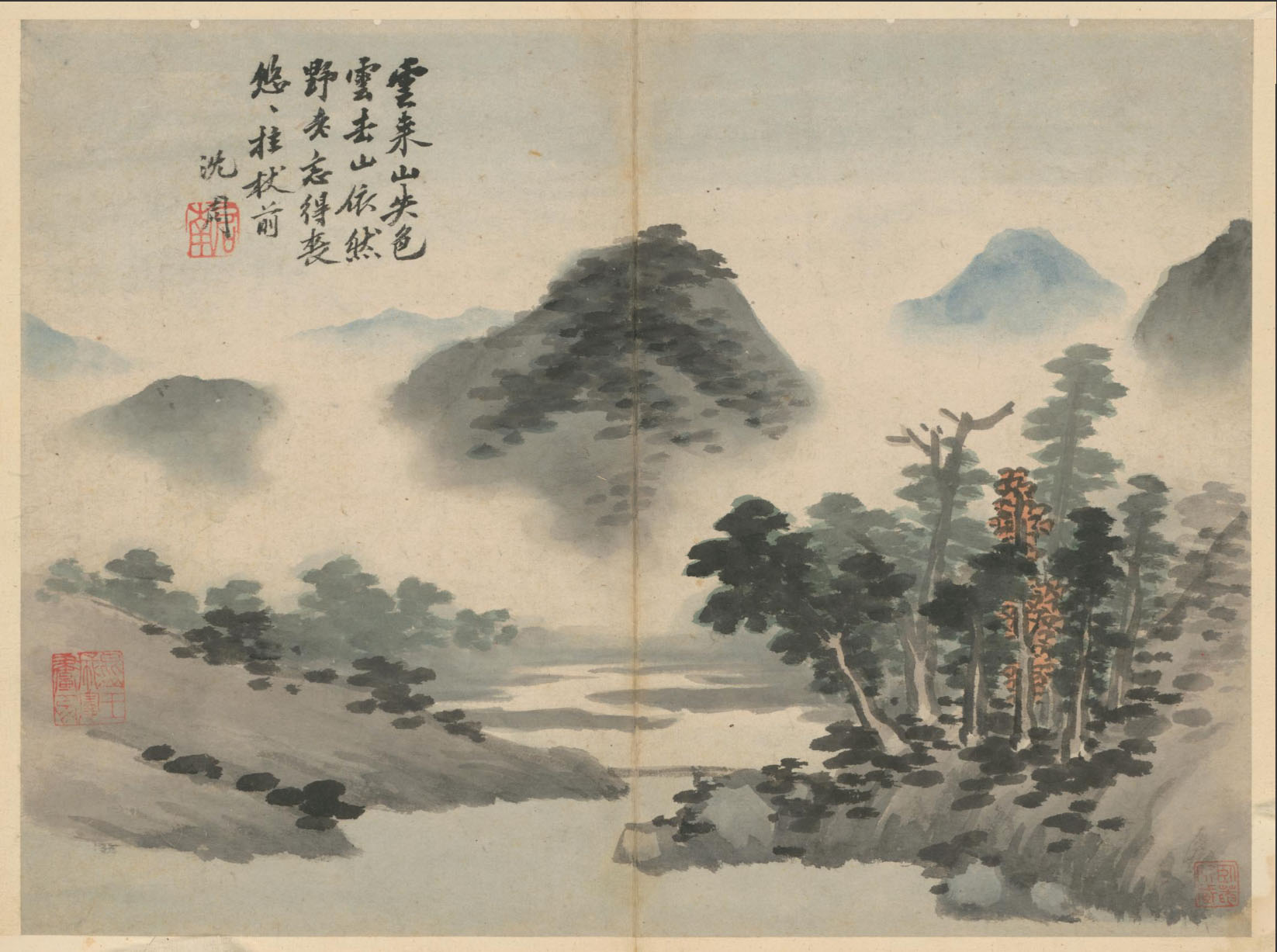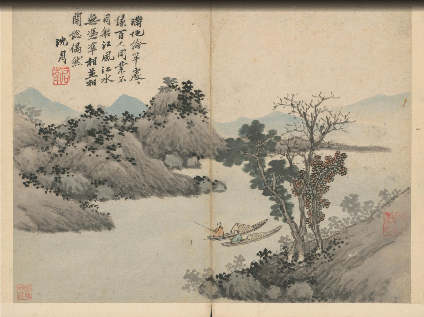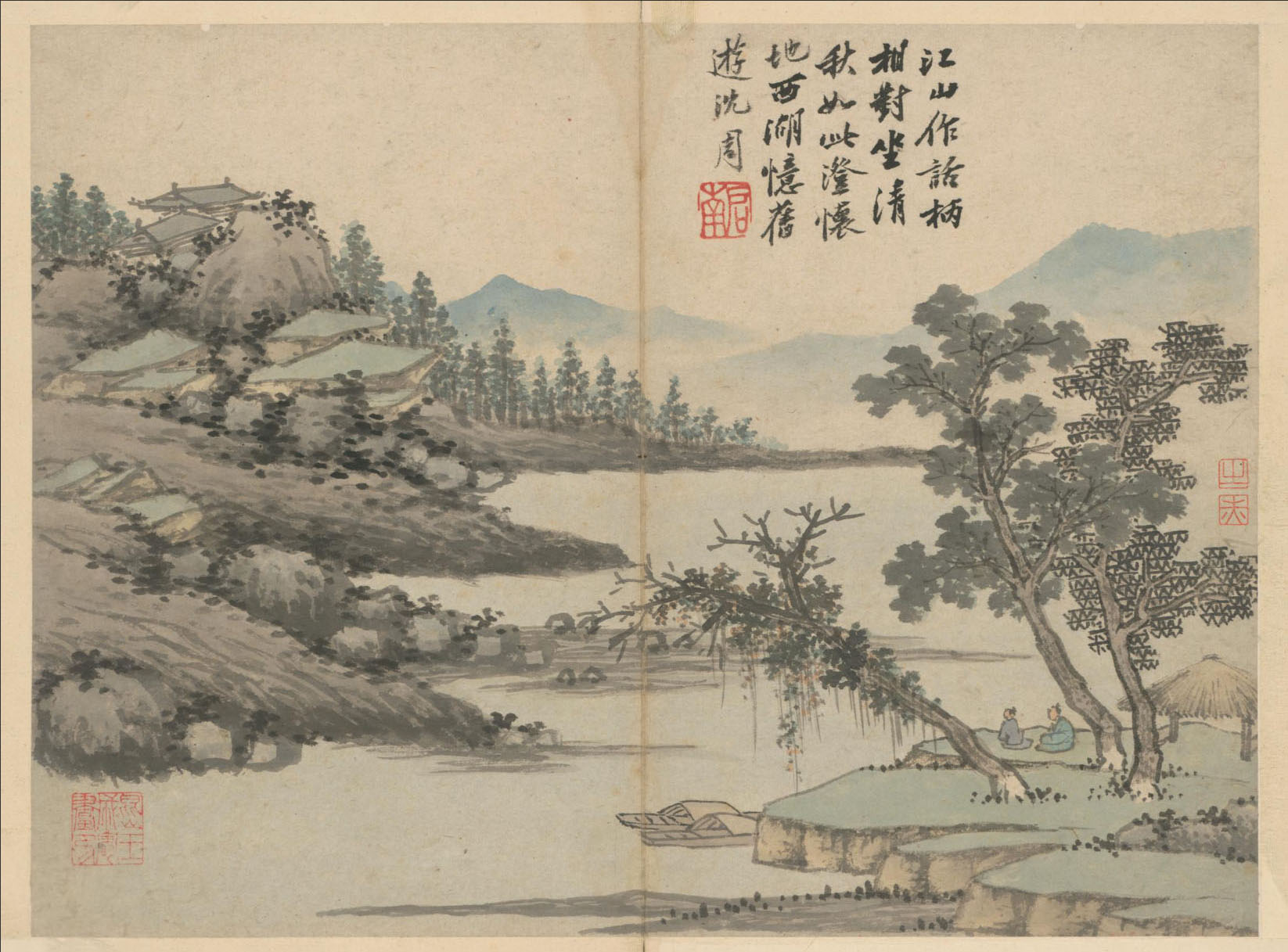 沈周《卧游图》册 纸本水墨、淡设色 共十七开,每开纵27.8厘米 横37.3厘米 北京故宫博物院藏
