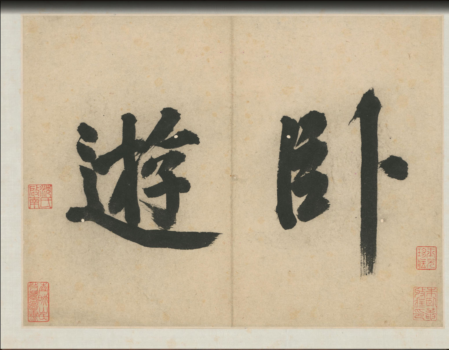 根据末开画家自题,可知该册页的“卧游”之名源自南朝宋宗炳在居室四壁挂山水以卧游的典故。然而不同于挂轴的是,该图册还可于卧床时仰面翻阅。 由此可见画家的绘制初衷和生活情趣。册中所绘山水、花鸟,运用多种画法,抒写各自意趣,也集中反映了沈周多样的艺术风格和丰富的内心世界。册中有山水7页,其余10页均写日常生活中习见的花卉、 禽畜等,清新、质朴,洋溢着自然天趣。画法也随意灵活,设色或水墨,或没骨,或勾勒渲染,形简神完。