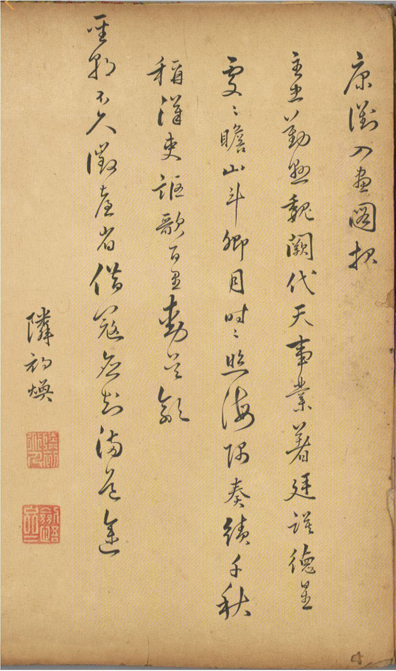 汤焕《草书七言诗页》纸本草书 北京故宫博物院藏 释文:使君佩印出…… 款署:邻初焕 钤印:水竹之居(起首白文)邻初道人(白文)剑悟斋(白文) 【资料来源】故宫博物院数字文物库(新00076990-30/40)