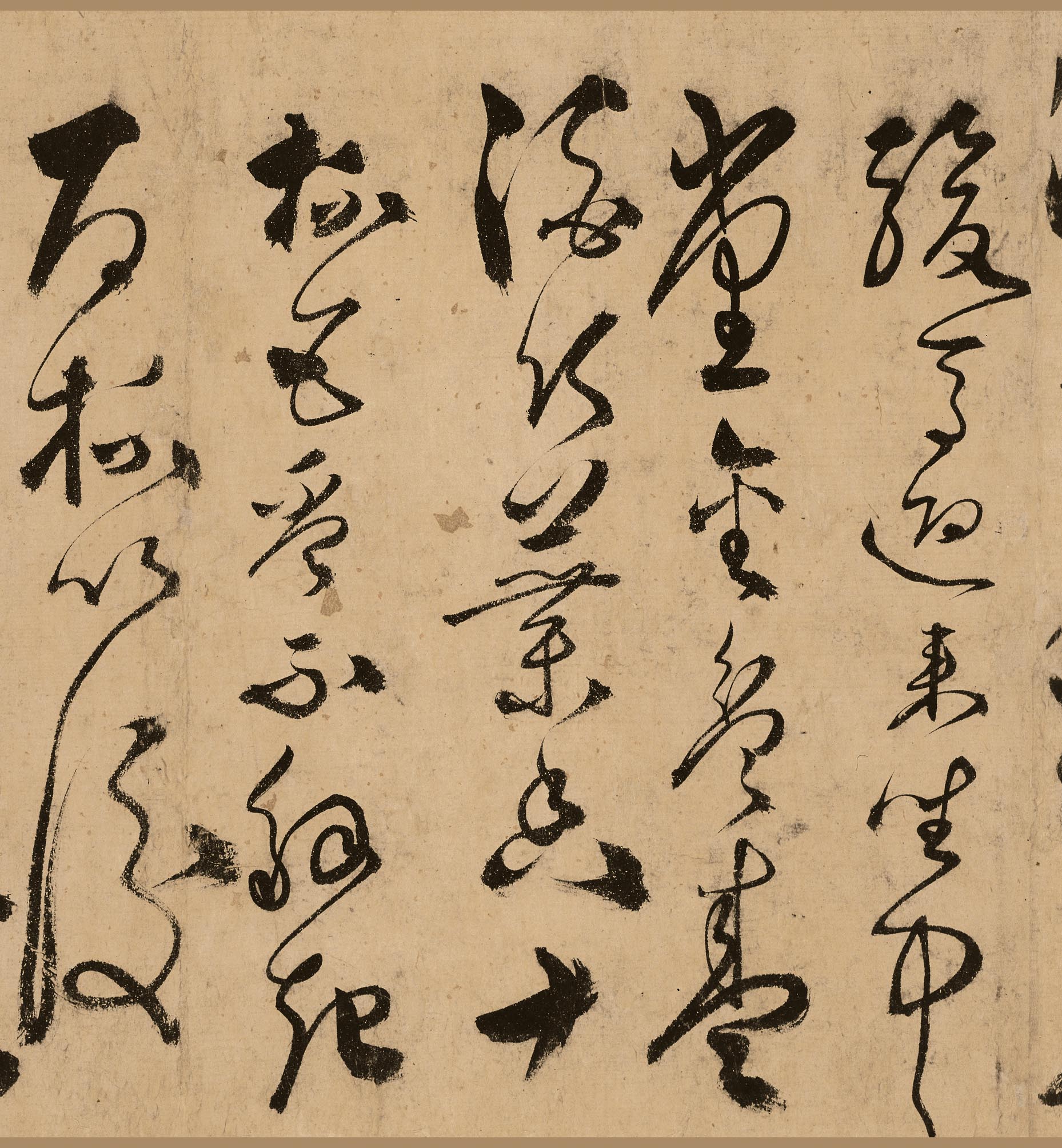 怀素(737~799年)的狂草书,不但享誉后世,在当时亦已倾动朝野,李白曾称赞他“少年上人号怀素,草书天下称独步”,又以“飘风骤雨惊飒飒,落花飞雪何茫茫”等诗句,赞美其草书的激扬挥洒。唐代著名的诗人如苏涣、戴叔伦等都有诗歌推许他在狂草创作上的卓越成就,尤以任华的《怀素上人草书歌》最为特出。