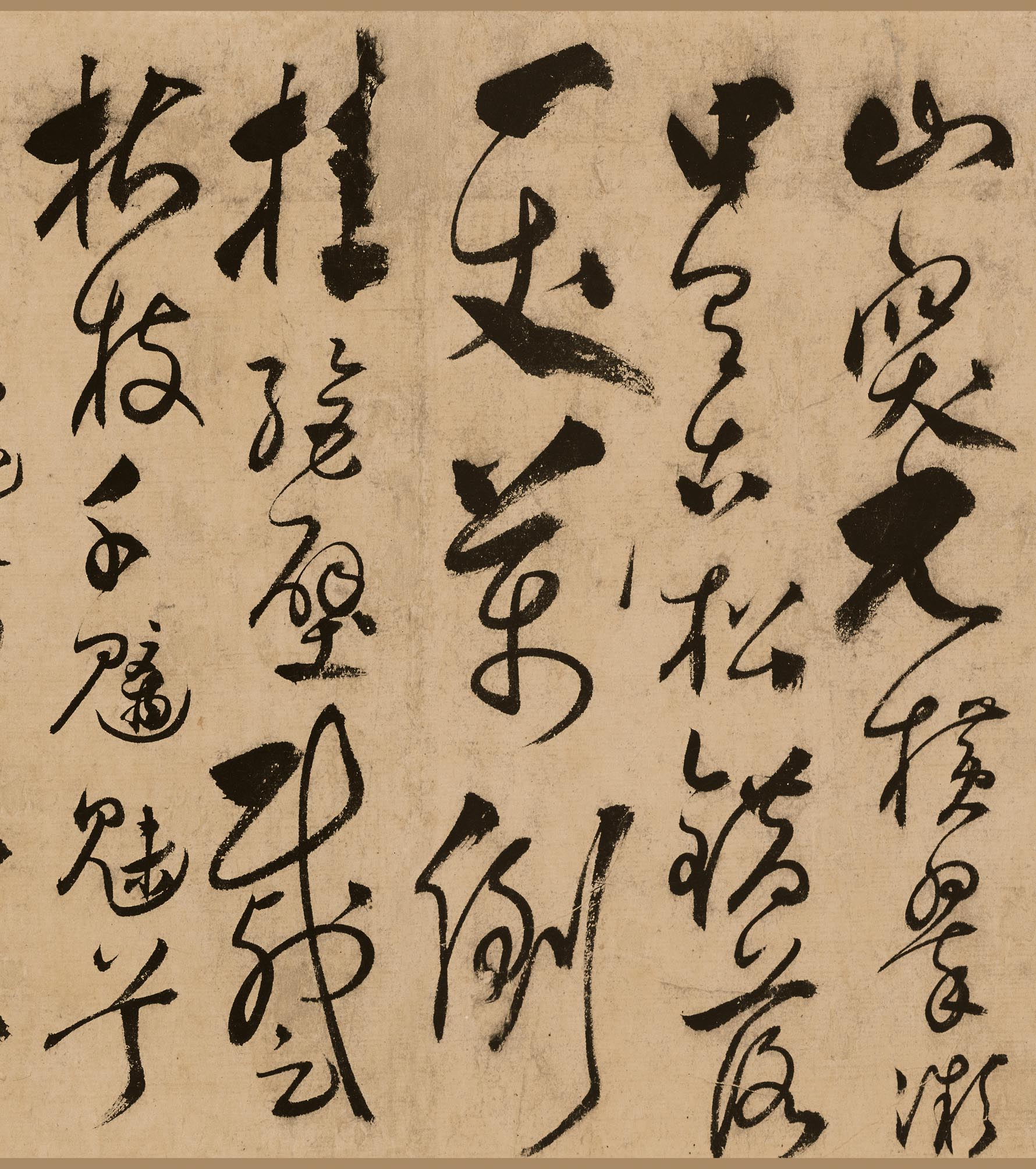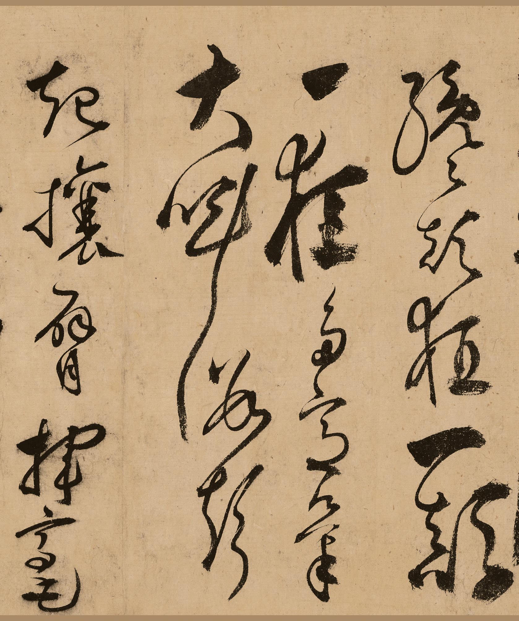 此卷书《任华〈怀素上人草书歌〉》,应是张弼传世最好的作品,它包含了张弼对僧怀素的钦敬,而且随着诗意的伸展,隐然把自己代入其中,成了诗中的主角。正如《自叙帖》是怀素草书一次淋漓尽致的表演,张弼亦借任华赞美怀素的诗句,把自己在狂草书上的成就尽情发挥。怀素耶,张弼耶,写到后来,明显有照花前后镜的狂喜了。