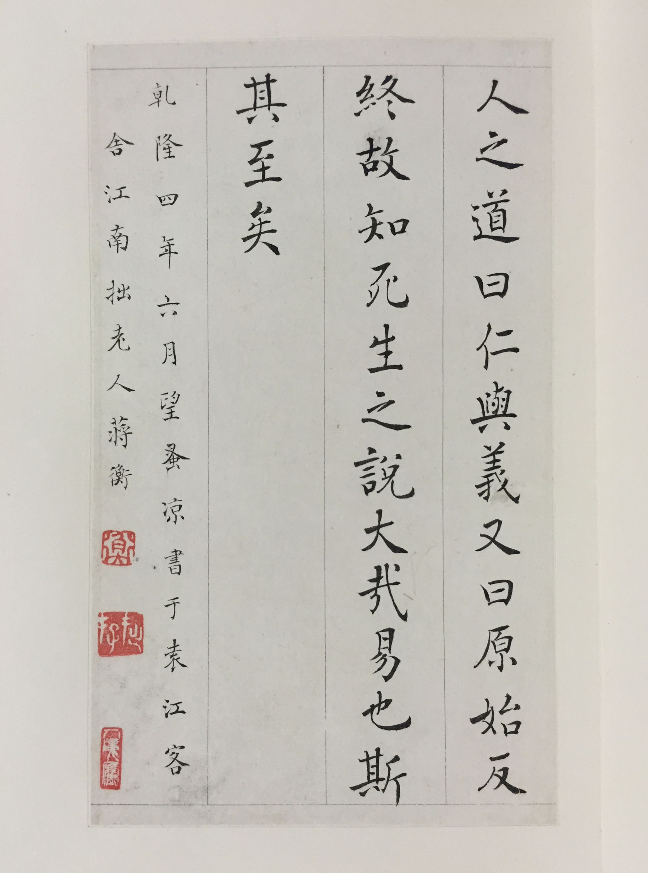 款识:乾隆四年六月望,早凉书于袁江客舍,江南拙老人蒋衡。