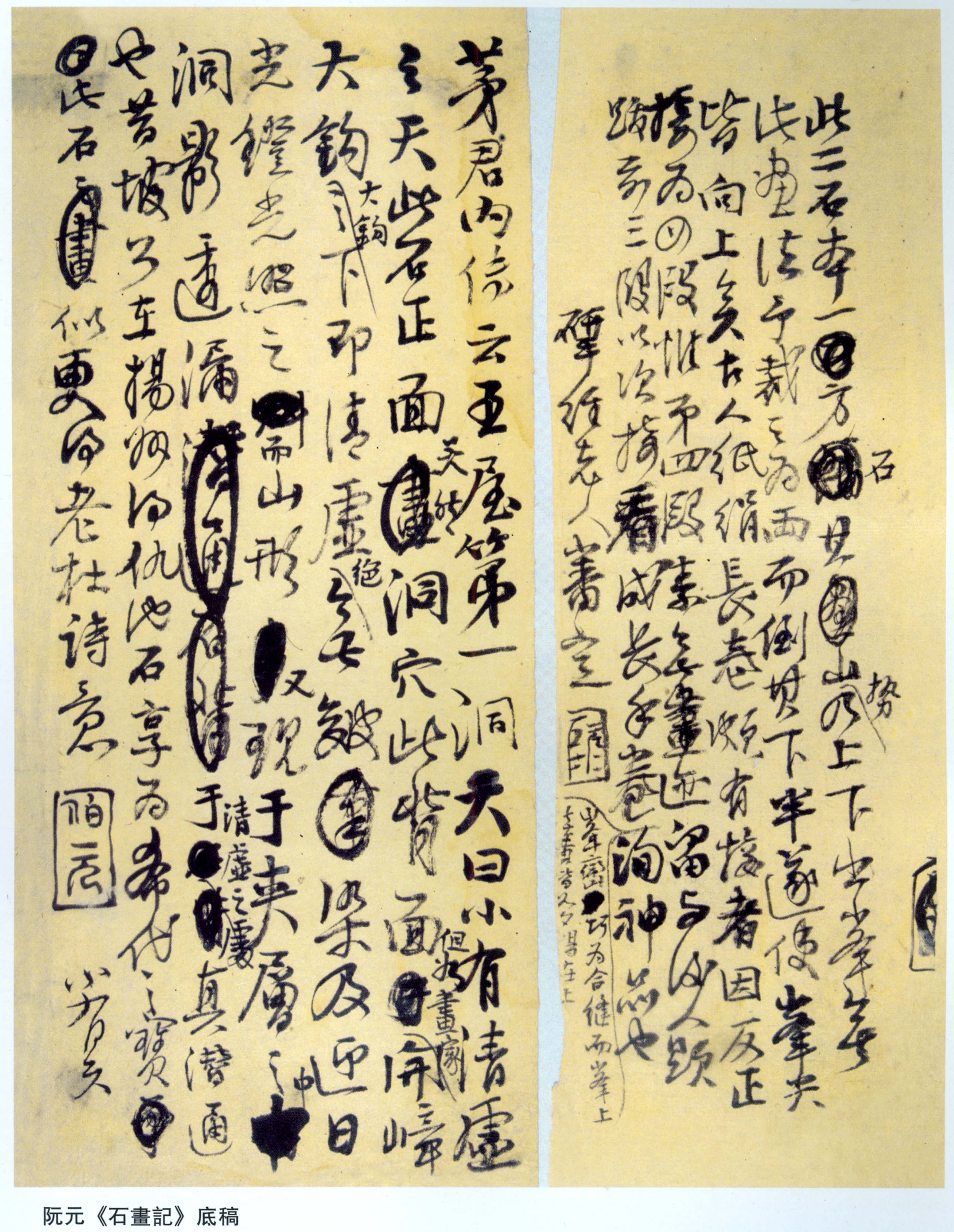 阮元工诗文、精鉴赏,善书法,亦作花鸟。阮元在任云、贵总督时,曾在许多具有天然图画的各色大理石上题识,后来曾编《石画记》一书,书有刻本传世。这里介绍的是《石画记》一书的底稿,舟斋收藏。底稿大小不一,达一百多张,大者如一页稿纸,小者仅火柴盒大小,纸张质量也是不一,可见是阮元灵感一到,随手写来。字体以行书为主,也有隶书、篆书、楷书,反映了阮元书法的多种面目。