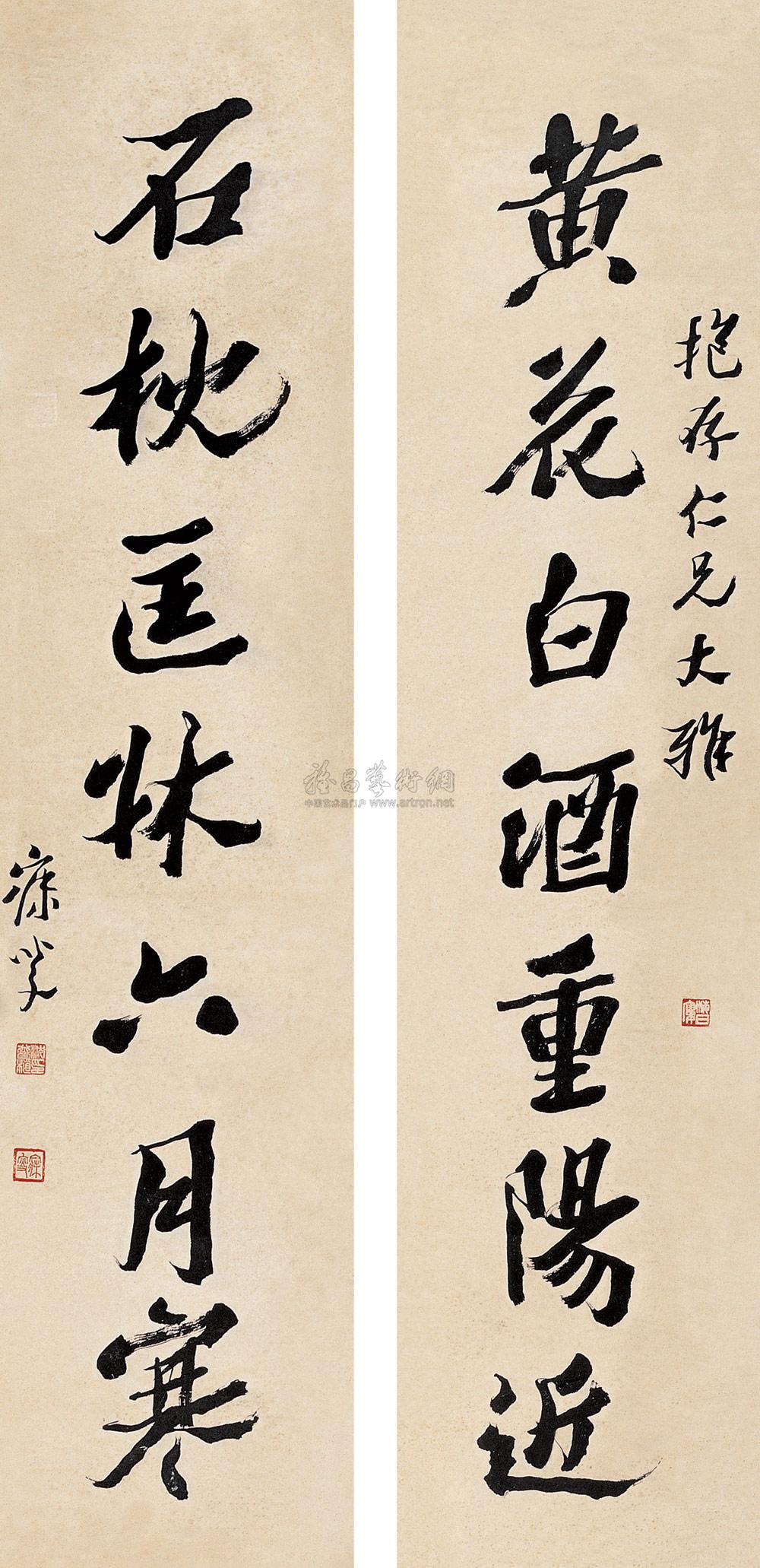 沈曾植《行书黄花石枕七言联》纸本行书 133×31cm×2 北京海王村画廊收藏