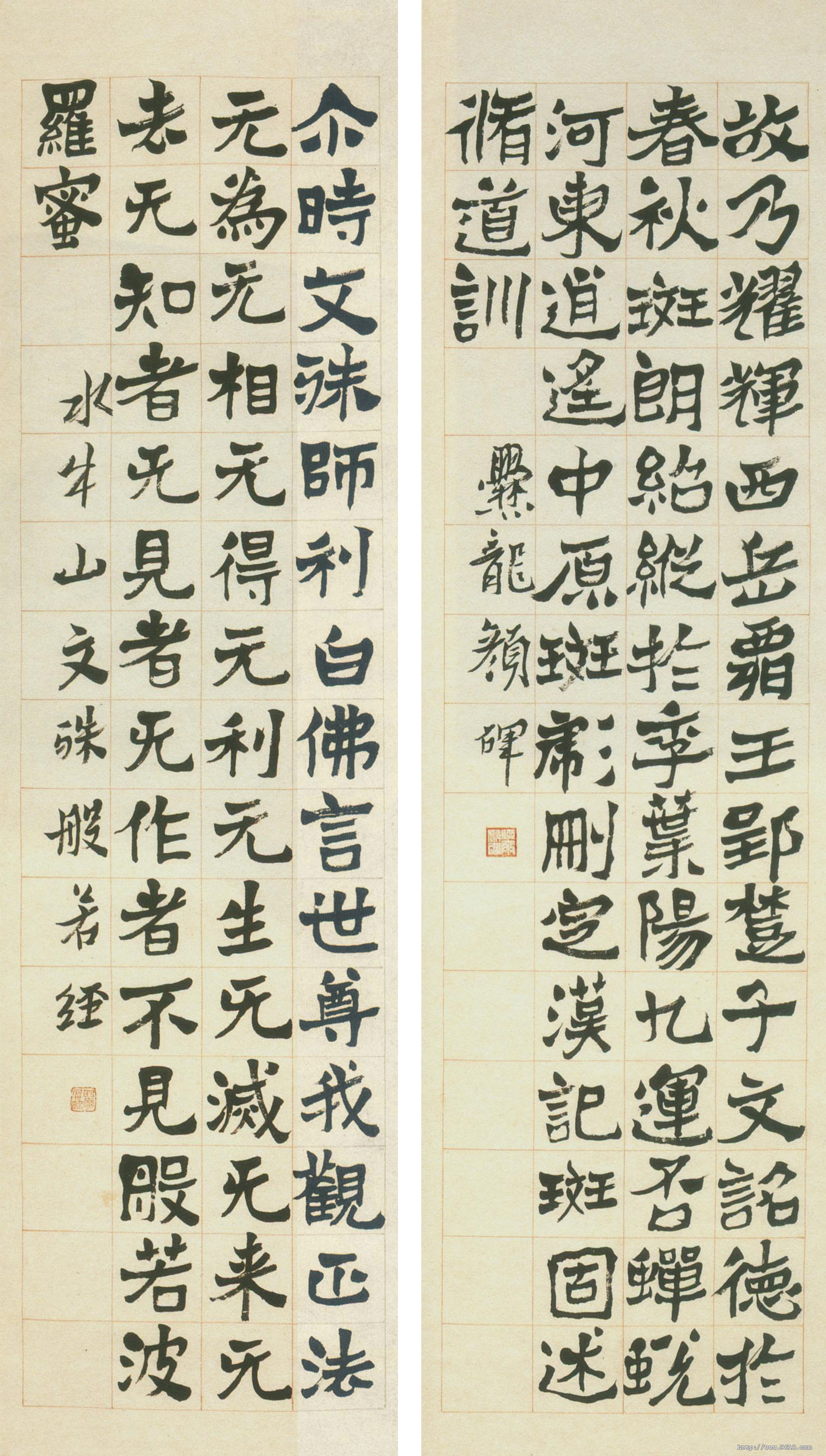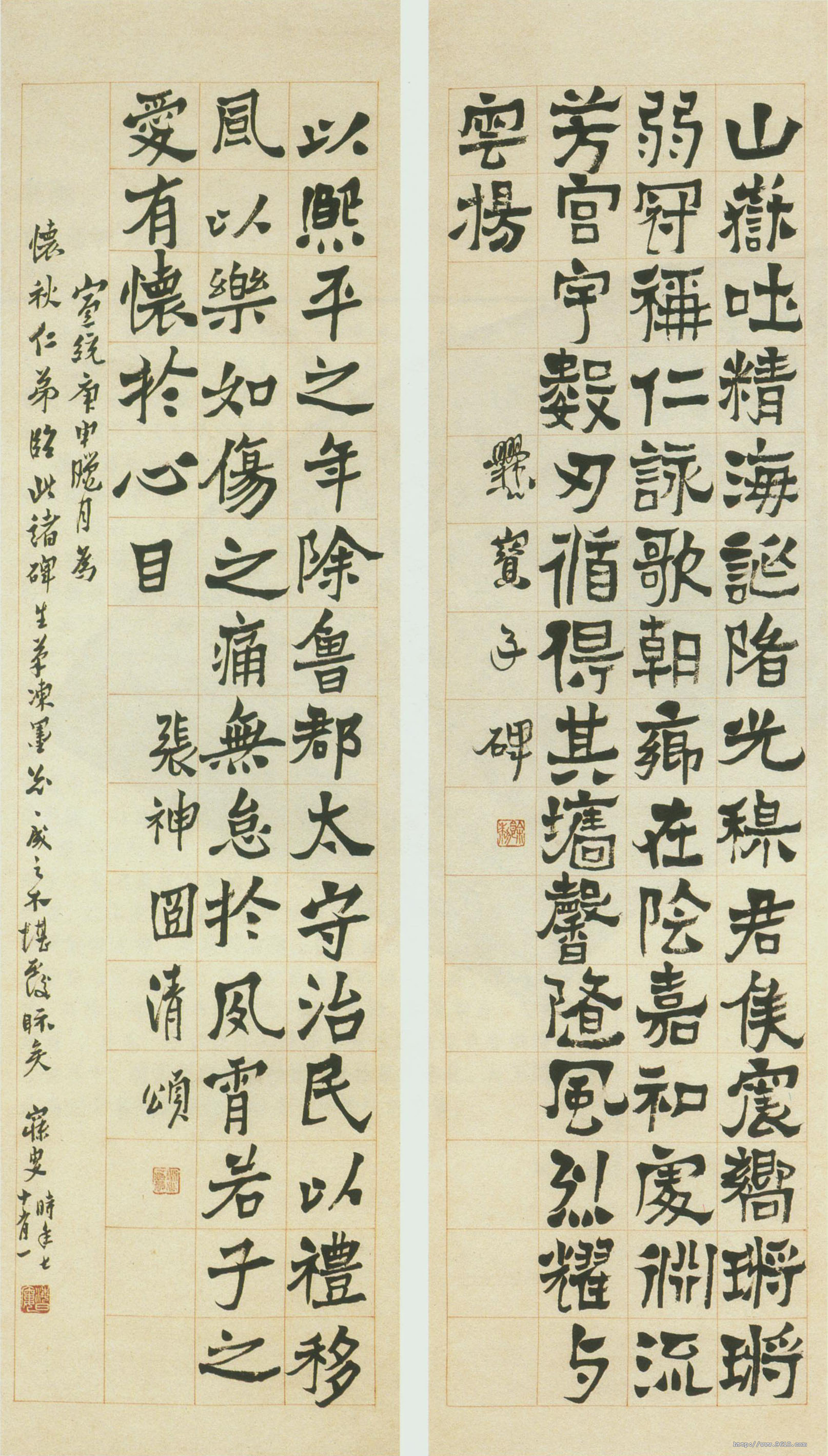 沈曾植《临魏碑楷书屏》 纸本 147×40cm×2 西泠印社藏