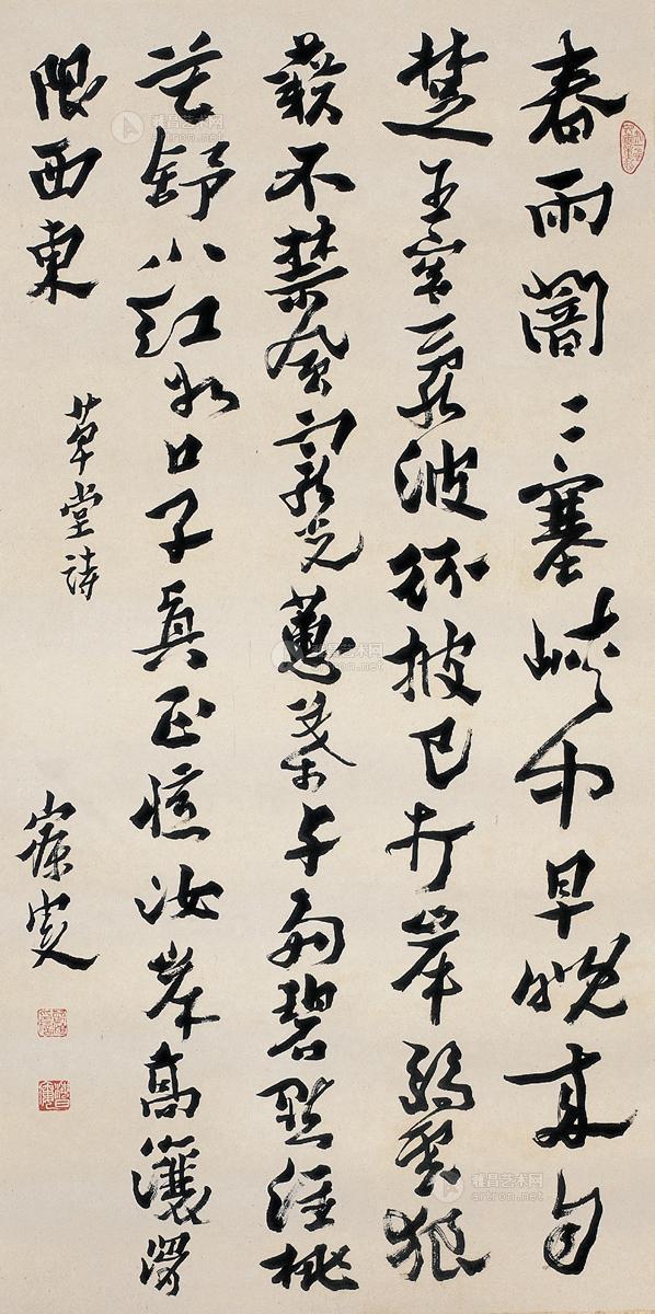 沈曾植《行草书杜甫草堂诗轴》纸本行草书 120×60cm 聚云楼旧藏 释文: 款署: 西泠印社拍卖有限公司2013秋季拍卖会中国书画古代作品专场 估价 RMB 180,000-250,000 拍卖时间 2013-12-14