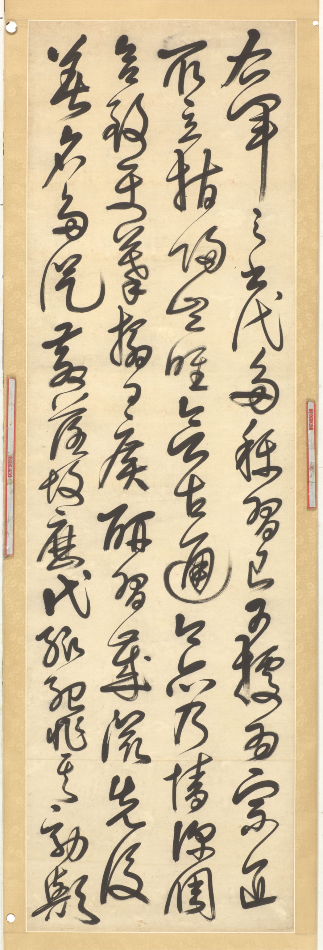 气概通疏,性灵豁畅。精心草圣,积有岁时,江岭之间,其名大著。故吏部侍郎韦公陟,睹其笔力,勖以有成;今礼部侍郎张公谓,赏其不薄(羈),引以游处。兼好事同作……羲之(节录怀素《自叙帖》)