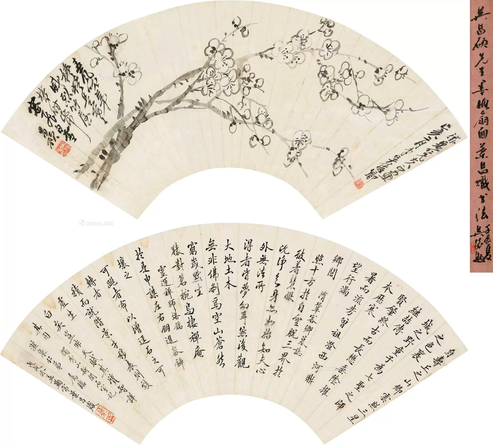 叶昌炽《行书扇页合吴昌硕梅花扇面》纸本 19×52cm 来自上海嘉禾拍卖2025秋拍
