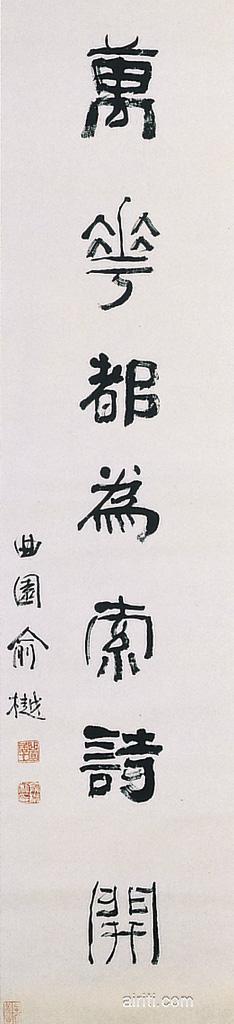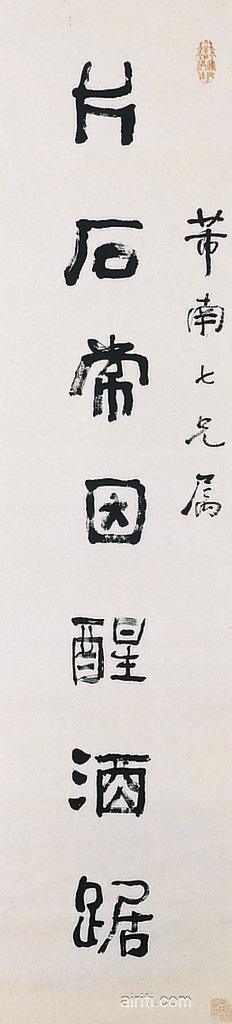释文: 片石常因醒酒踞。万华都为索诗开。 【款识】芾南七兄属。曲园俞樾。 【收传】台员林氏定静堂所藏书画。志超鉴赏。 【资料来源】http://www.airiti.com.cn/pmto/npop.aspx?picno=NPA028025AA