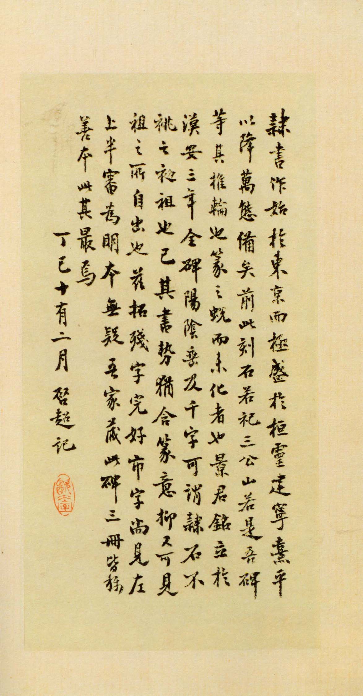 此碑一反汉隶多方扁的特征,字形稍长,结体宽博,笔画平直方劲,有凌厉万钧之势。竖笔多作“倒薤”(悬针)状,在汉隶中独树一帜。明王世贞谓其“书法故自古雅”(《弇州山人稿》)。清孙承泽也称其“方整有分法。王元美称之曰‘古雅’,非溢美也。”(《庚子消夏记》)。翁方纲云:“元吾竹房(丘衍)《三十五举》云,‘隶书须是方劲古拙,斩钉截铁,挑拨平硬如折刀头,方是汉隶”,此语惟是碑可以当之。”(《两汉金石记》)杨守敬云:“隶法易方为长,已开峭拔一派,郭兰石(尚先)谓‘学信本(欧阳询)书,当从《郑固》、《景君》入’,可谓探源之论。”(《激素飞清阁平碑记》)康有为云:“古气磅礴,曳脚多用籀笔,与《天发神谶》相似,盖以和帝以前书皆有篆意。”