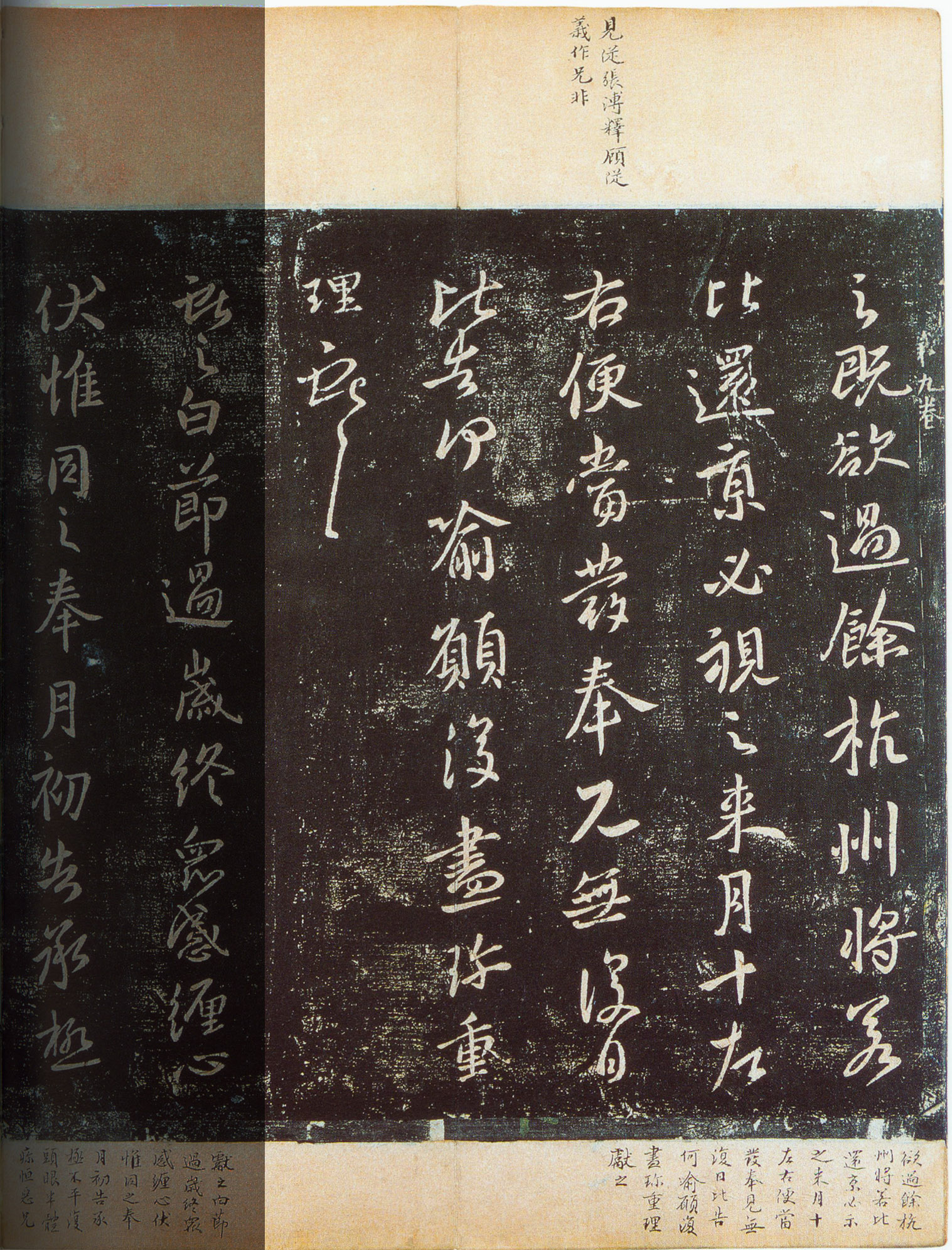 王献之《餘杭帖》(又称《触事帖》)拓本。行书。六行,五十一字。入刻《淳化阁帖》卷九。
