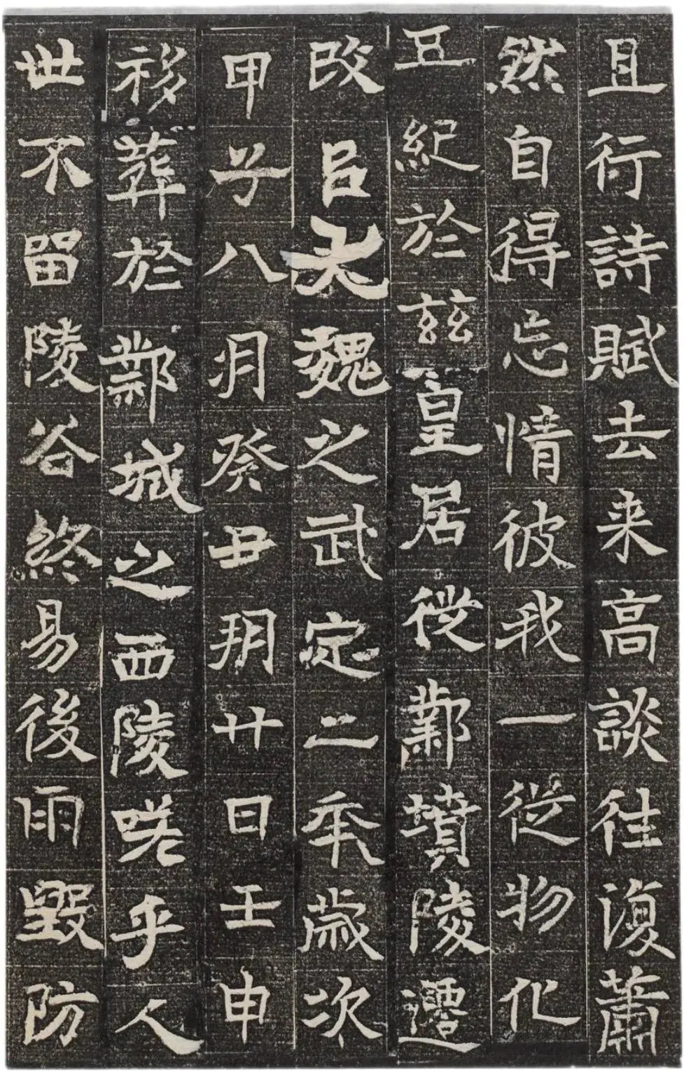 东魏《淮南王墓志铭》正书原刻。东魏武定2年(544)8月20日葬,经折装,墨纸尺寸:22.5 x 15.2厘米,民国拓本,石现藏河南安阳金石保存所。