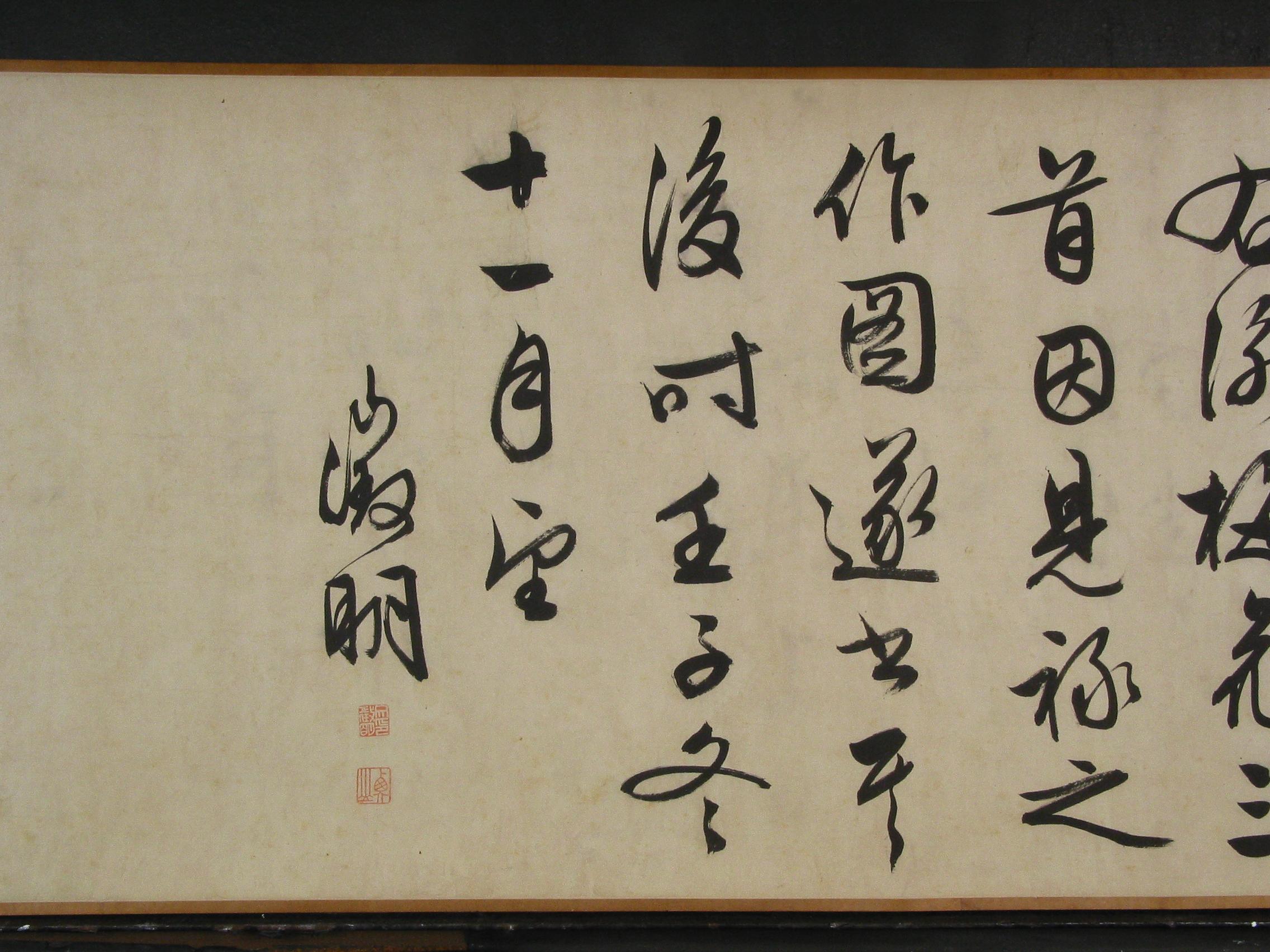 释文:略 款识:右咏梅花三首,因见禄之作图,遂书其后。时壬子冬十一月(1552年)望,徵明。 钤印:文徵明印(白文)、衡山(朱文)