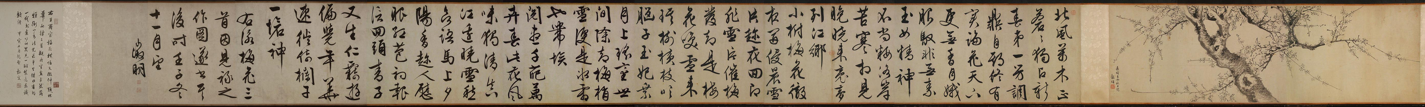 文徵明《自书梅花诗卷》 纸本行书 47.2×470cm 画47×147.5cm 1552年 辽宁省博物馆藏