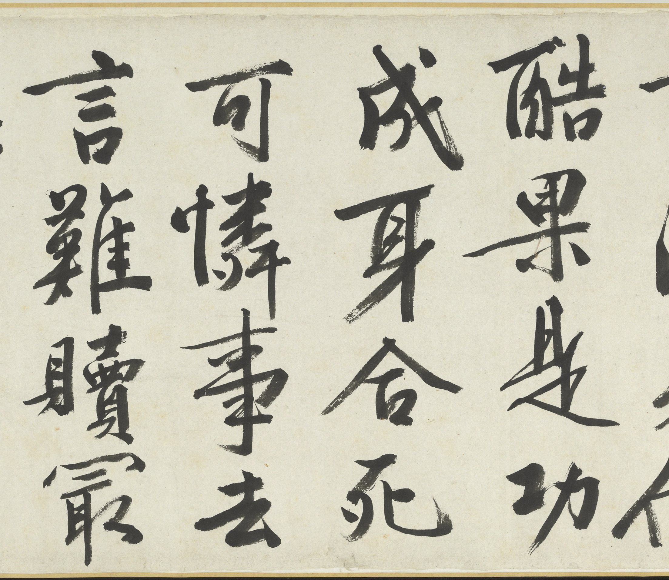 此卷文徵明为张凤翼(1527-1613)书此卷,依幅后跋文,知吴中沈氏掘地得高宗手勅石刻,文氏为此题词,薄罪秦桧而归本于高宗,可谓发千古独见之言!通篇大字行书,笔力遒劲,结字纵逸,为九十岁离世数日前所书,却毫无涣散之状。