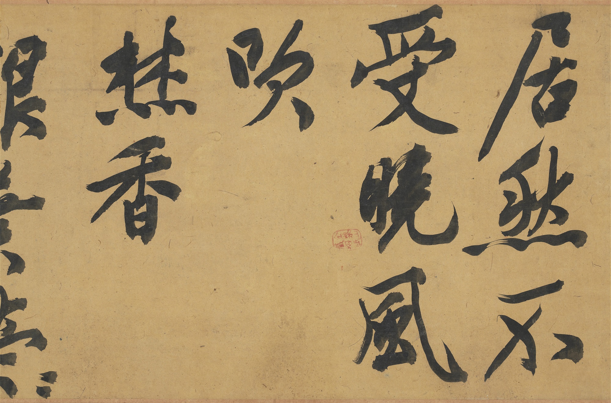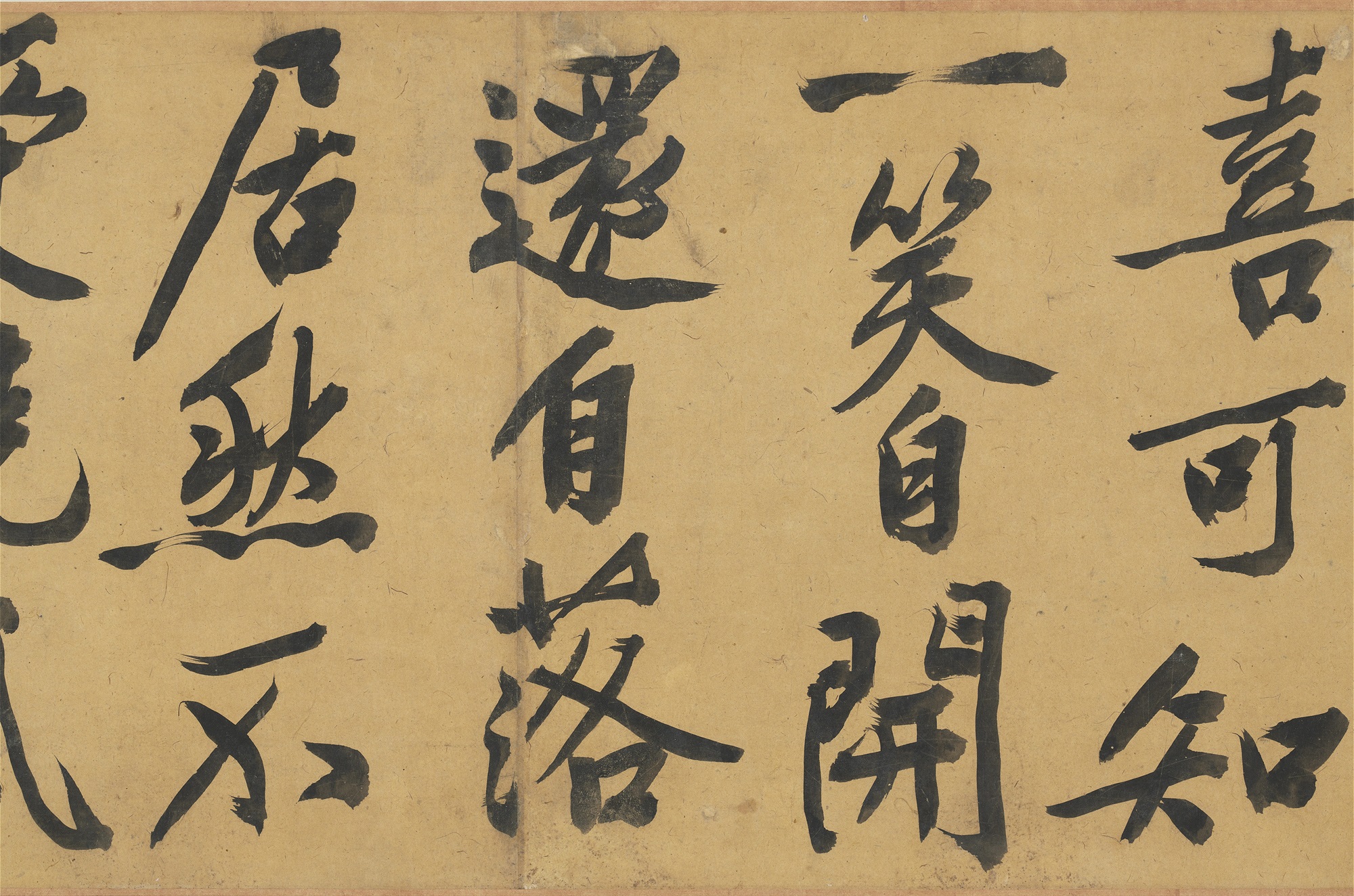 本幅以大字书写《灯花》与《焚香》等二首,凡四十八行,共一四九字,为八十一岁所作,字大如核桃,且笔画苍老,用笔劲健,气势通贯全幅,结字笔法颇得宋代黄庭坚(1045-1105)纵逸之气。灯花常指灯烛的灯芯燃烧时飞出的火花,或燃尽时所形成的花状物,传统习俗视灯花為吉祥之兆。诗中提及预知明日有喜事,或许即依据此灯花报喜的寓意。